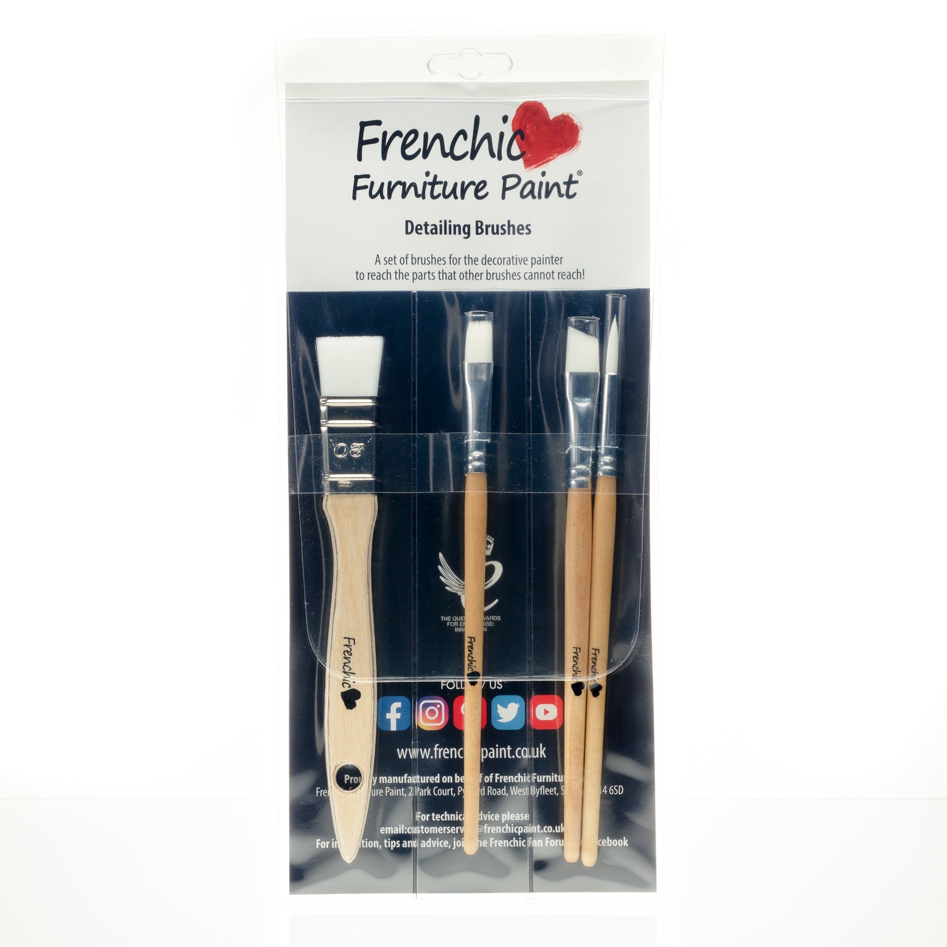 Frenchic Detailing Brushes - a set of 4 smaller brushes for the decorative painter to reach the parts that other brushes cannot reach! Handcrafted in Italy, these fine brushes are ideal for using on ornate carving and finer detail when Frenchic'ing your furniture.